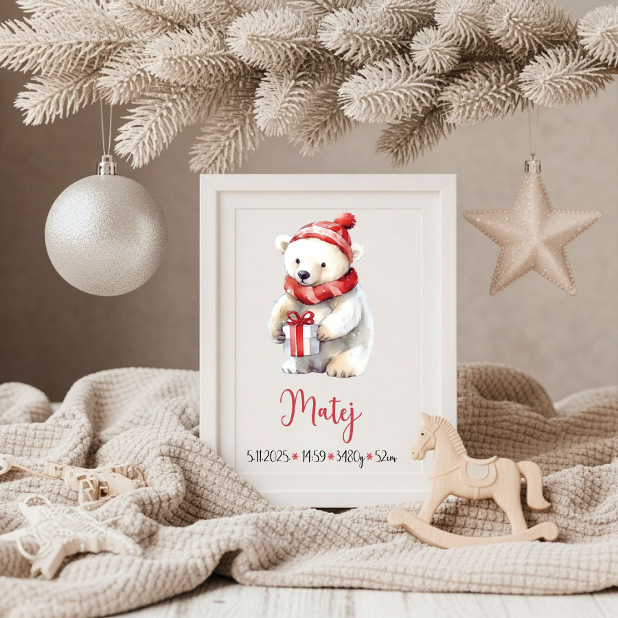 Lijepa grafika će sigurno obogatiti svaku dječju sobicu te može biti i super poklon za nove roditelje. Proizvod sadrži grafiku s medvjedićem, imenom i podatcima rođenja u bijelom okviru bez stakla. Grafici možete dodati čestitku te će poklon za roditelje i novorođenče biti potpun.