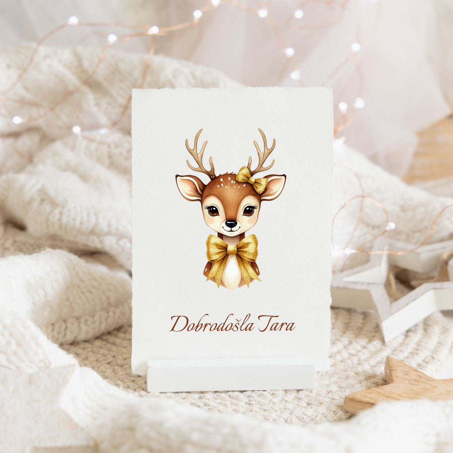 Naša personalizirana čestitka savršeno se uklapa u svaki poklon, donoseći dodatnu dozu ljubavi i pažnje. Bilo da je dio poklon paketa ili samostalan dar, ova čestitka bit će neizbrisiv podsjetnik na početak novog, sretnog poglavlja u život obitelji.